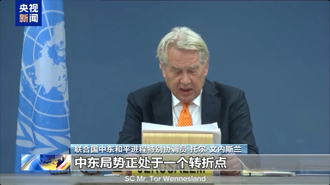 央視記者 徐德智:當然,中東局勢是我們一直關(guān)注的焦點。本周,安理會就巴以問題舉行了常規(guī)會議。聯(lián)合國中東和平進程協(xié)調(diào)員托爾·文內(nèi)斯蘭再次表達了對局勢的關(guān)切。
