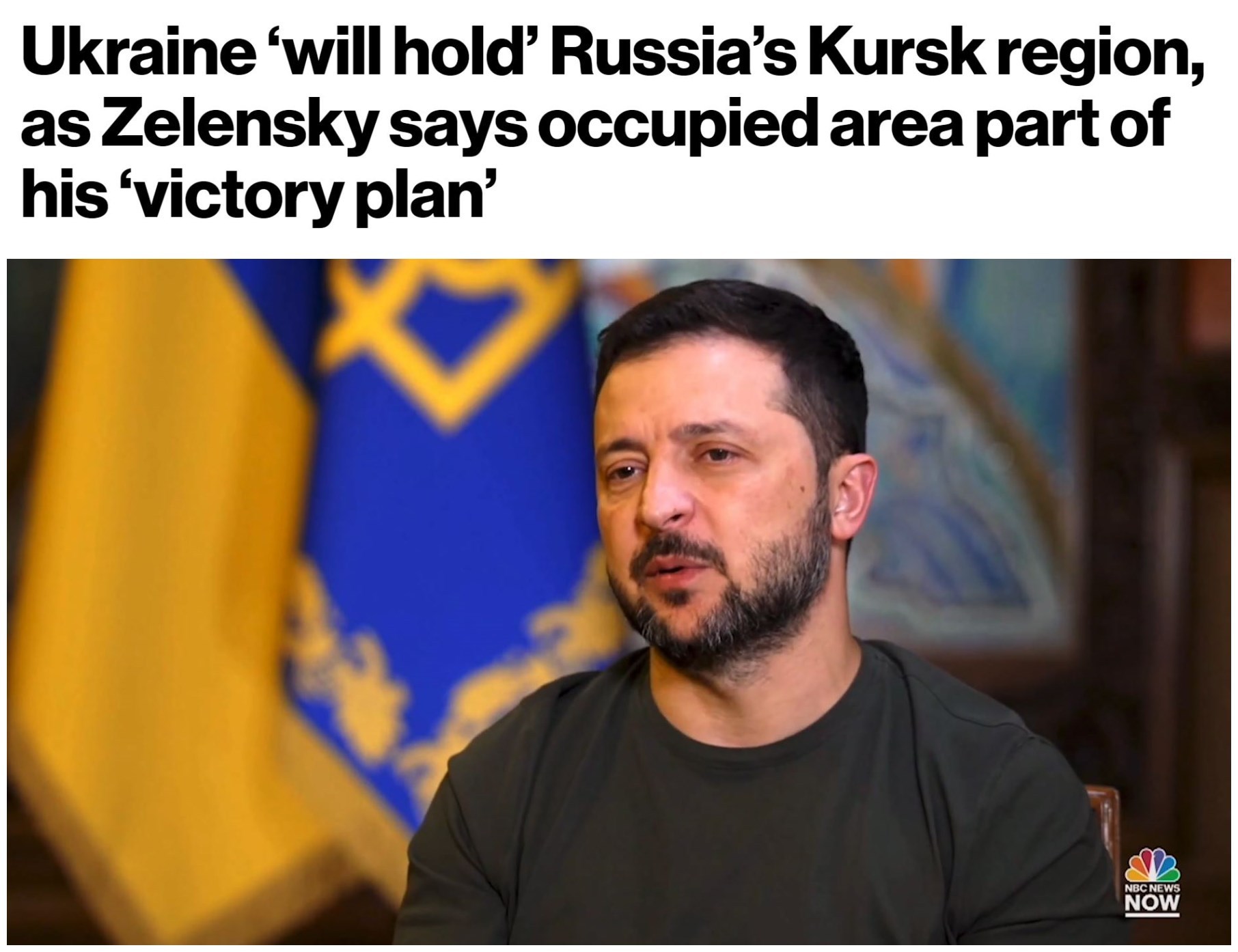 當(dāng)?shù)貢r間9月3日,烏克蘭總統(tǒng)澤連斯基接受美國媒體專訪,他在談及俄烏沖突問題時表示,烏克蘭發(fā)動針對俄羅斯庫爾斯克州的越境軍事行動,是他即將公布的“勝利計劃”的組成部分。