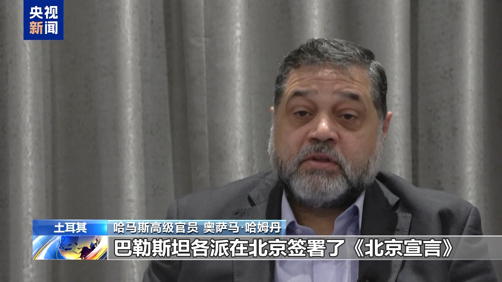 哈馬斯高級官員 奧薩馬·哈姆丹:巴勒斯坦各派在北京簽署了《北京宣言》,同意組建臨時民族和解政府,對加沙和約旦河西岸進(jìn)行有效管控。以色列試圖將約旦河西岸和加沙地帶分裂開來,這不是我們想要的,也不會同意。