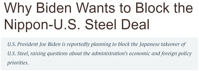 在亞洲,被美國(guó)“坑”的最新的例子要數(shù)日本制鐵公司收購(gòu)美國(guó)鋼鐵公司遇阻。