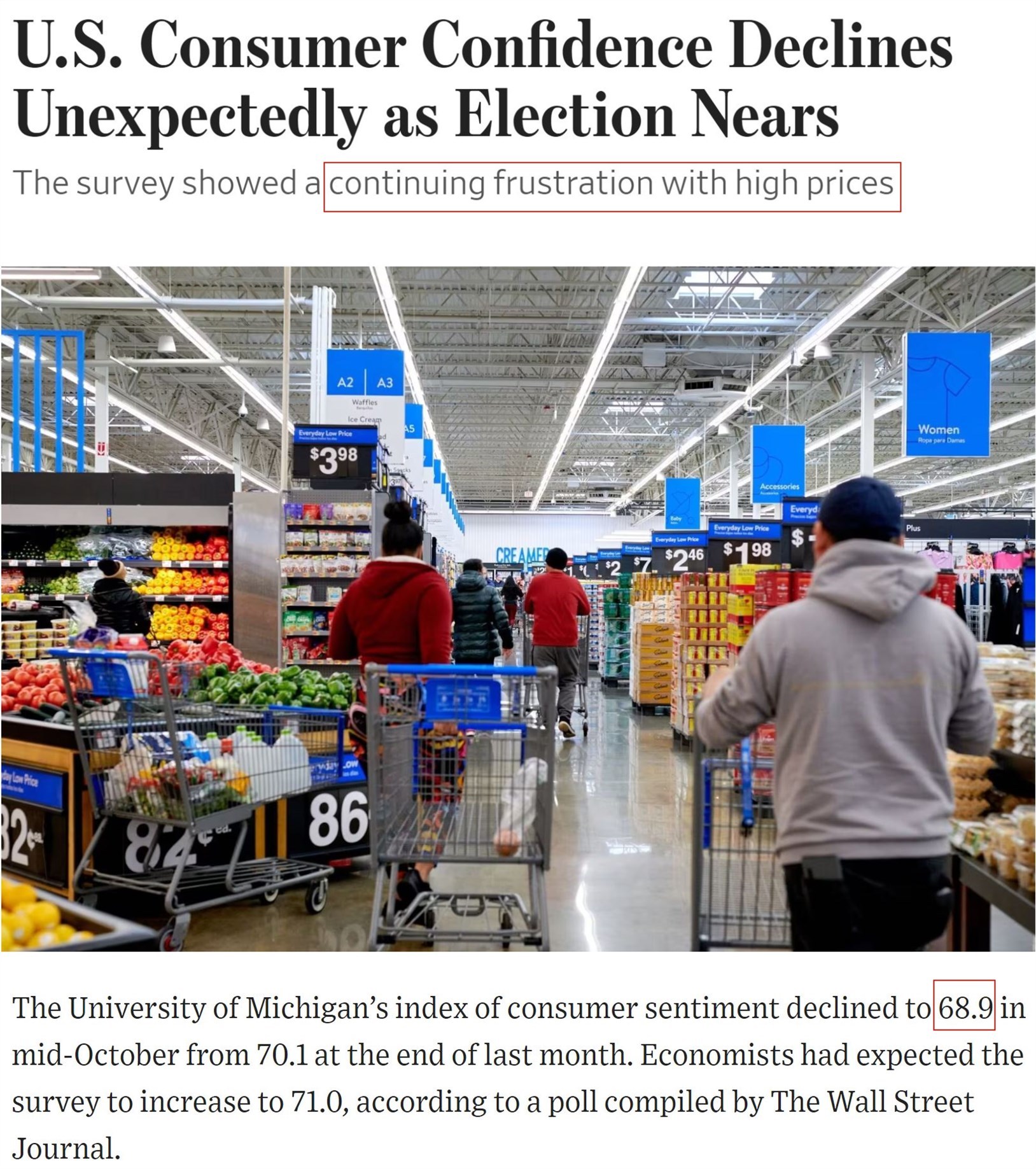 值得注意的是,美國密歇根大學日前發(fā)布10月份消費者信心指數(shù)意外出現(xiàn)三個月來的首次下滑。分析人士認為,對高生活成本揮之不去的沮喪情緒抵消了對就業(yè)市場更樂觀的看法。