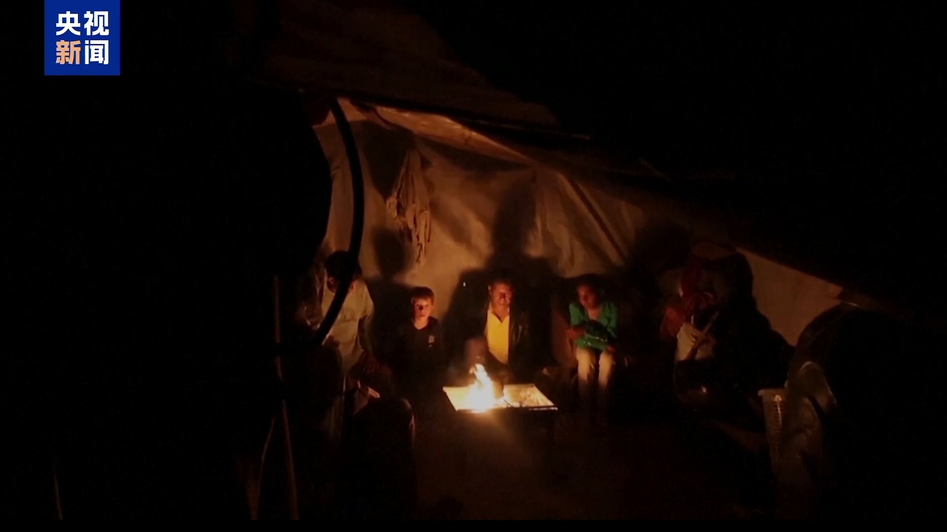 由于頻繁的被迫流離失所,生活在加沙地帶南部的阿布和加達夫婦如今帶著他們的幾個孩子露宿在一片墓地里。這里沒有燃料和電力,只有他們兩人支起的簡陋的帳篷。天氣寒冷,全家人只能靠明火和毛毯取暖。