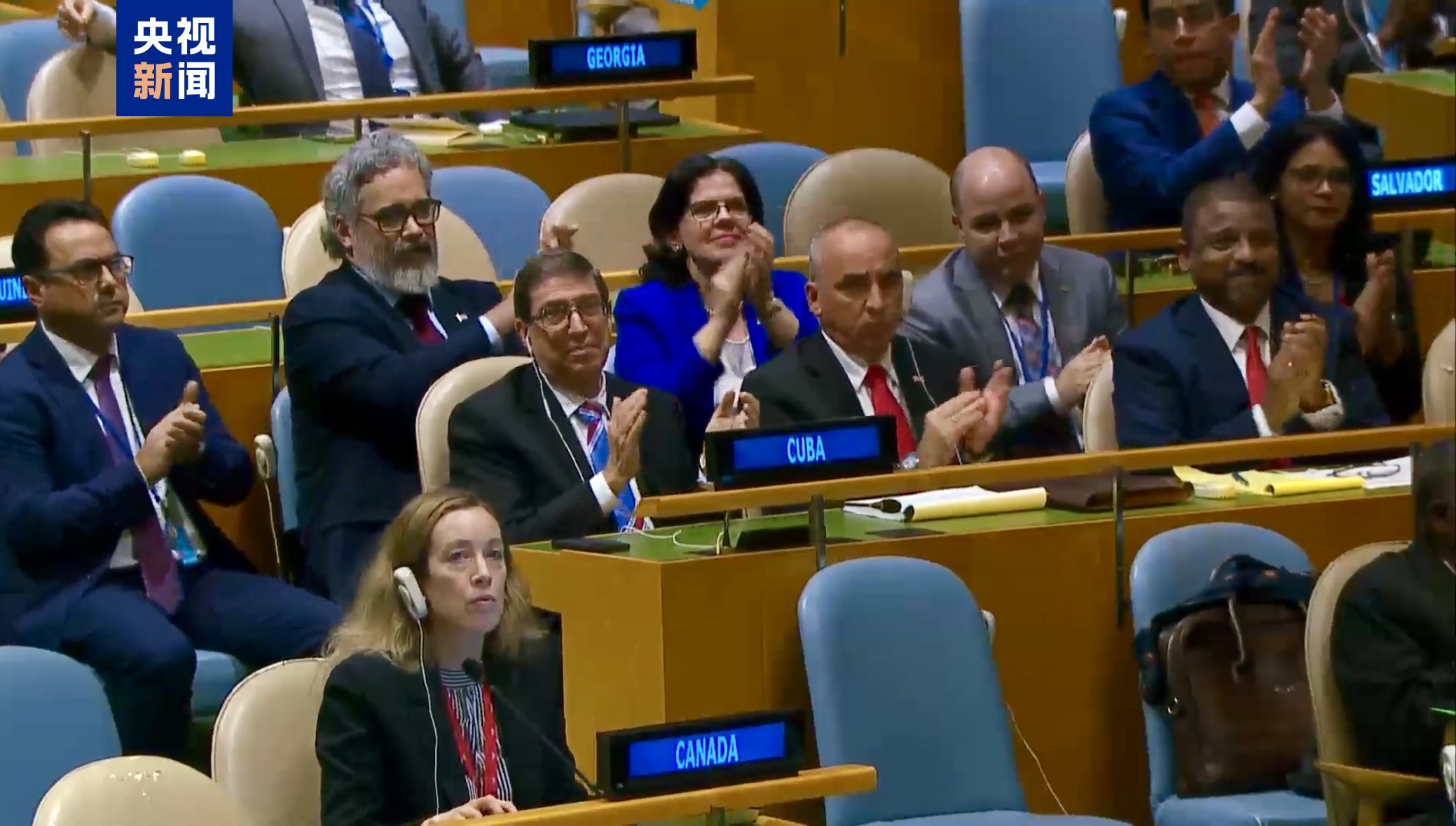 投票結(jié)束后,聯(lián)大會議廳響起熱烈掌聲。