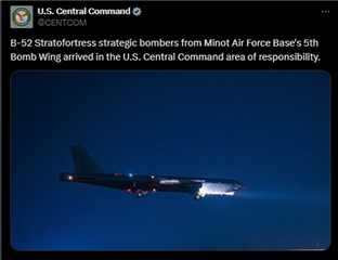 “來自邁諾特空軍基地第五轟炸機聯(lián)隊的B-52戰(zhàn)略轟炸機已抵達美國中央司令部責(zé)任區(qū)。”美國中央司令部當(dāng)?shù)貢r間11月2日通過社交媒體平臺發(fā)布上述內(nèi)容。