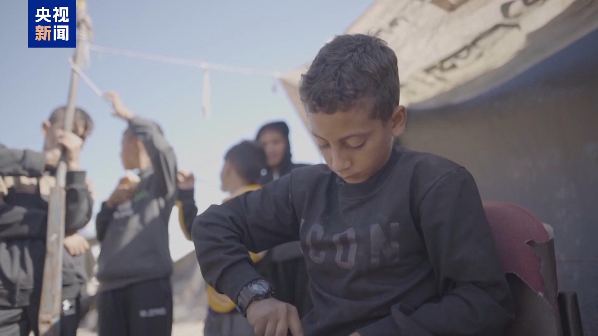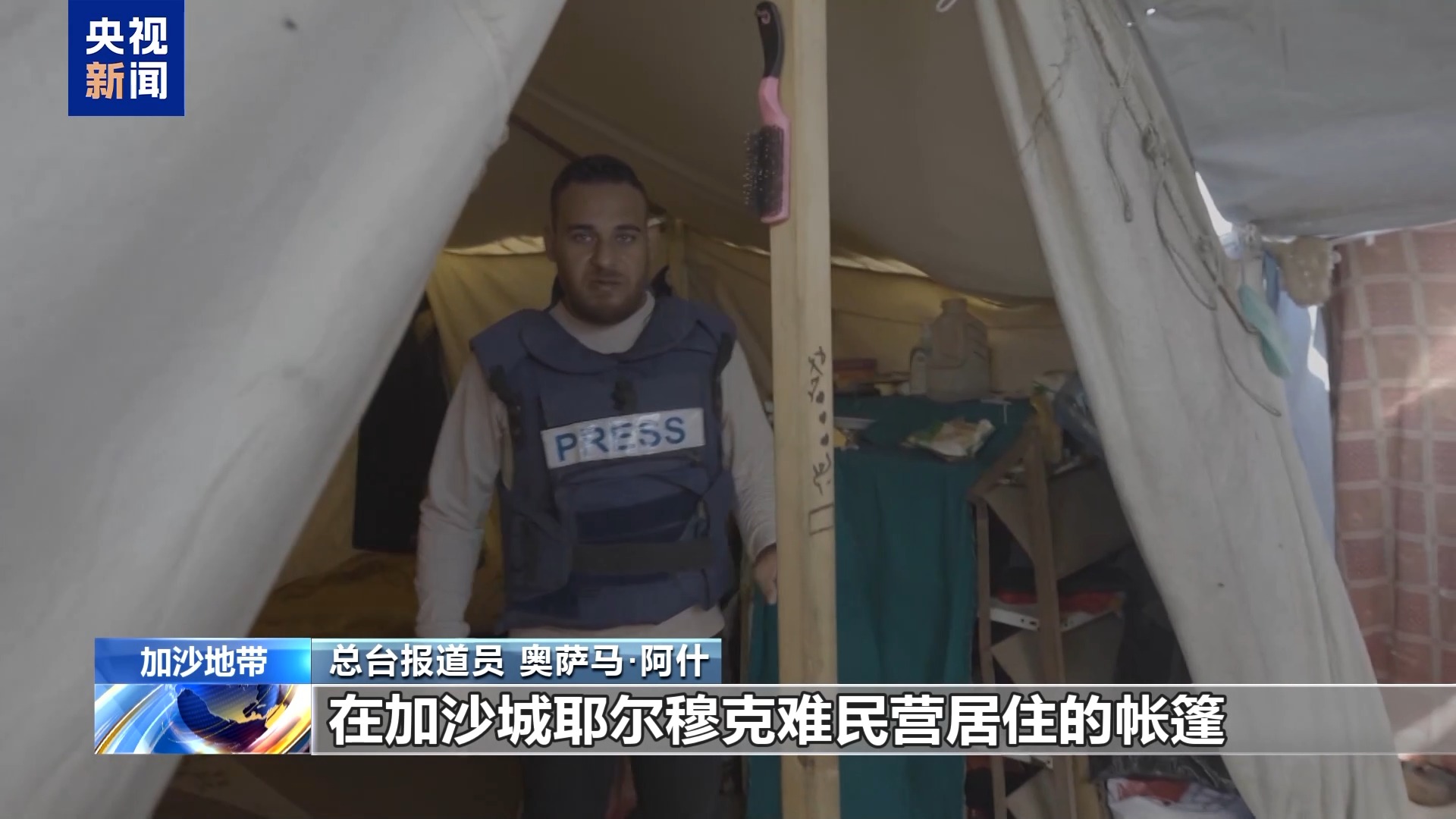 總臺報(bào)道員 奧薩馬·阿什:這是巴薩姆和家人在加沙城耶爾穆克難民營居住的帳篷。在這個營地以及其他難民營中,他們的境況與許多流離失所的民眾一樣,他們因以軍猛烈空襲和地面進(jìn)攻而逃離加沙北部。這里的狀況非常艱難,帳篷面積狹小,勉強(qiáng)能容納十口之家。因?yàn)闆]有床墊,其中一些人不得不睡在沙地上。而在帳篷內(nèi)外,到處都可以看到蒼蠅和蟲子。這里的難民生活狀況極其惡劣,就像巴薩姆一樣,耶爾穆克難民營中無數(shù)困境中的兒童正在艱難求生。