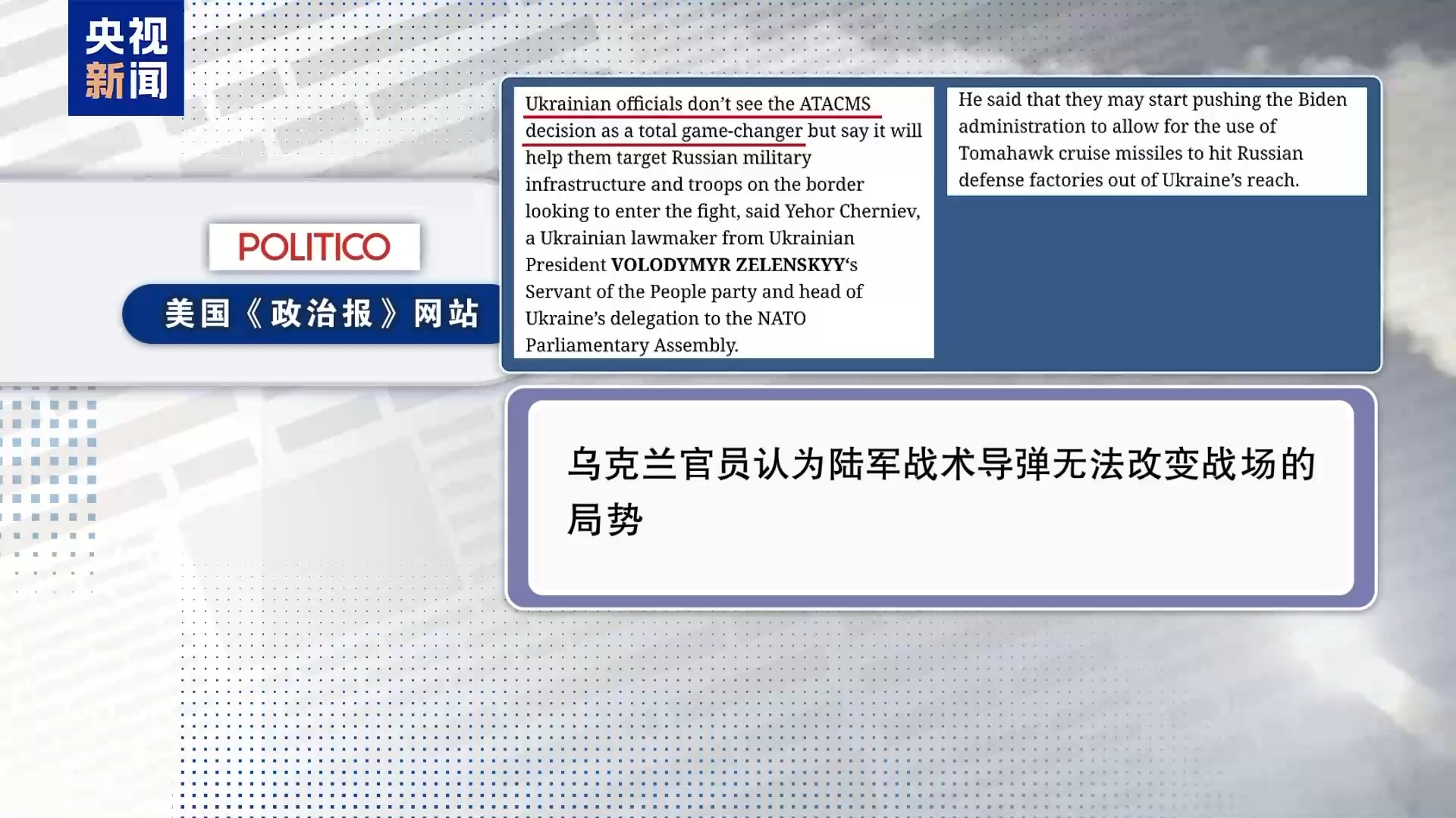 美國《政治報(bào)》網(wǎng)站報(bào)道稱,烏克蘭官員認(rèn)為陸軍戰(zhàn)術(shù)導(dǎo)彈無法改變戰(zhàn)場的局勢,他們希望美國提供更加強(qiáng)大的武器。