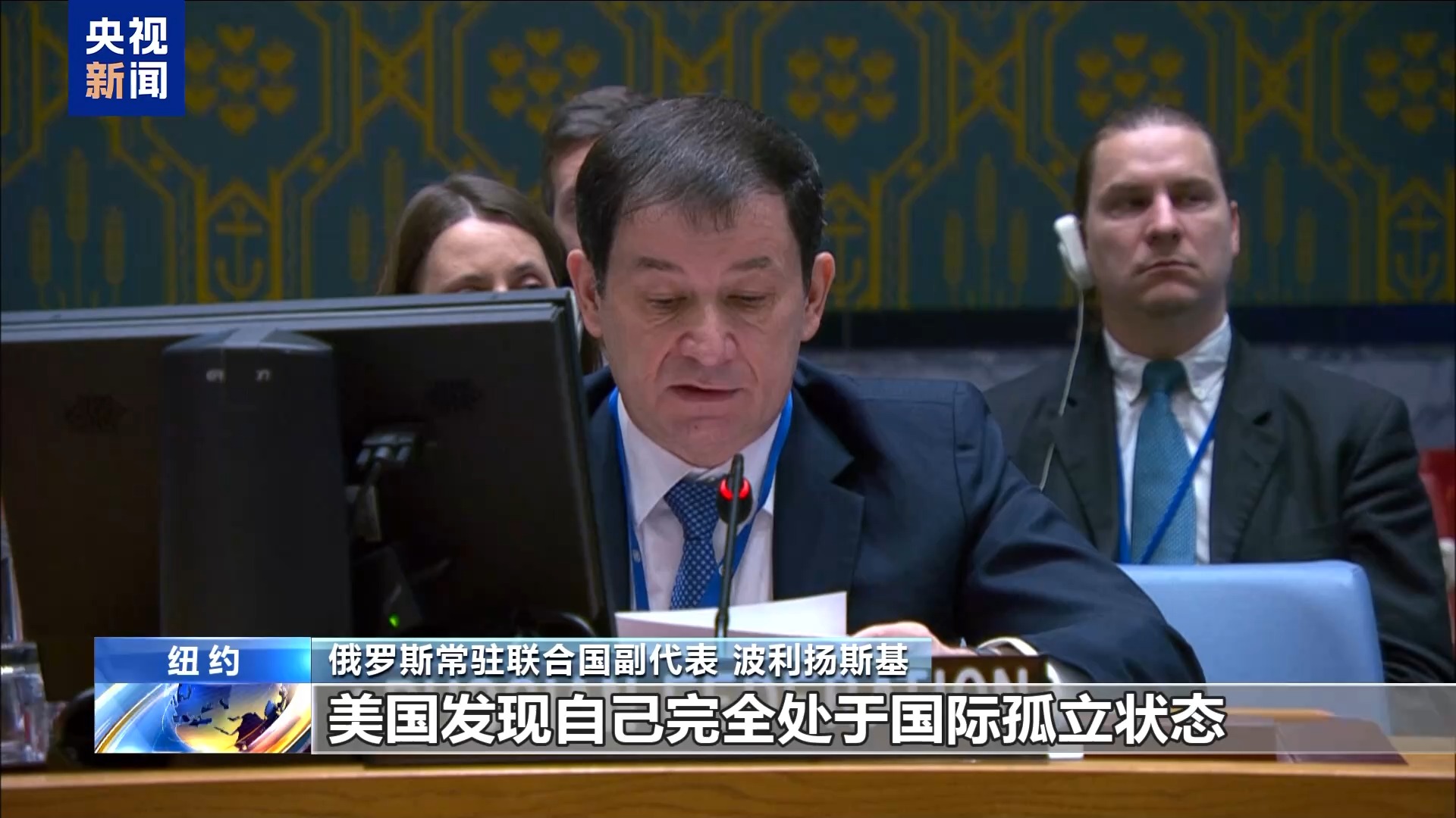 俄羅斯常駐聯(lián)合國(guó)副代表波利揚(yáng)斯基在發(fā)言中呼吁加沙地帶立即實(shí)現(xiàn)停火,并批評(píng)美國(guó)在安理會(huì)一再否決加沙停火協(xié)議草案。
