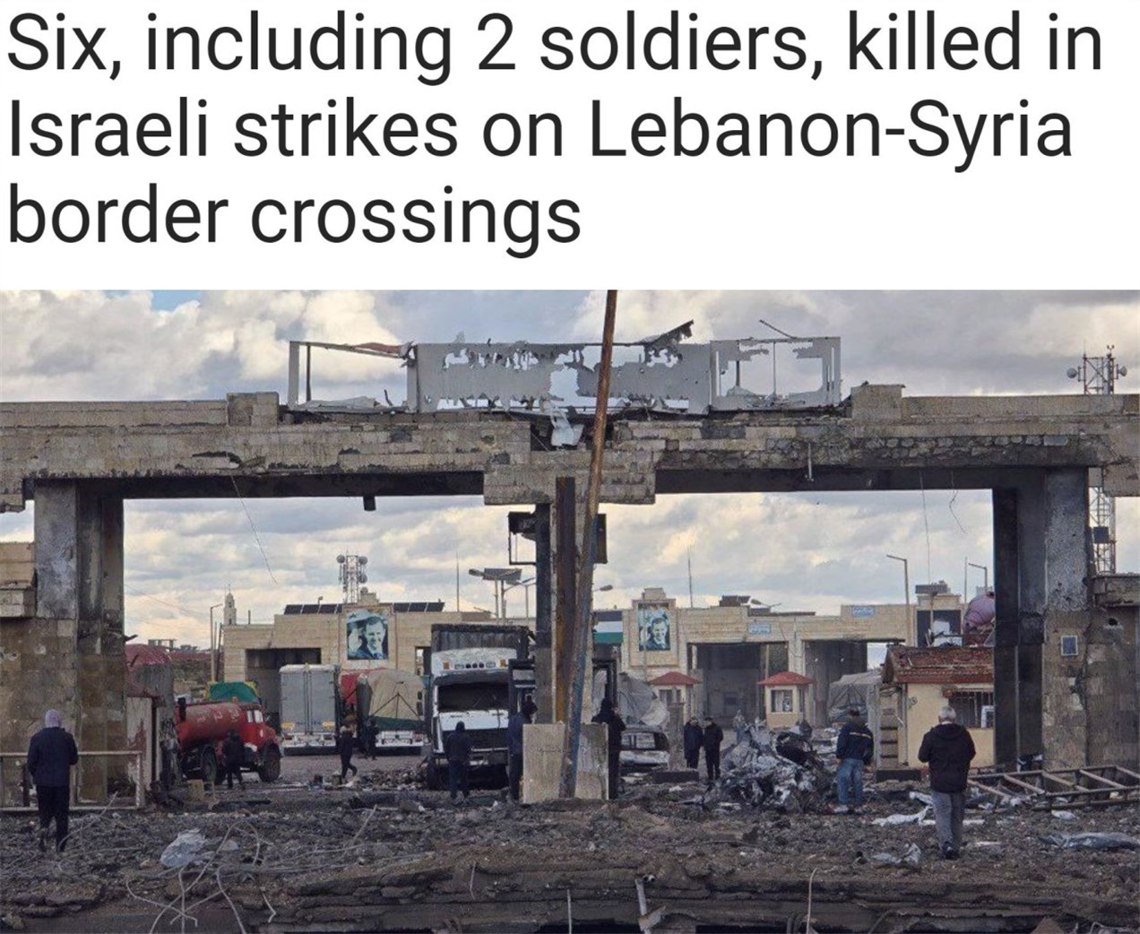 敘利亞軍方27日發(fā)表聲明說,該國霍姆斯省西部毗鄰黎巴嫩的陸路口岸當(dāng)天遭以軍空襲,造成6人死亡、12人受傷。死者包括2名士兵、1名敘利亞紅新月會志愿者和其他3名平民。傷者包括婦女、兒童,空襲還造成重大財產(chǎn)損失。