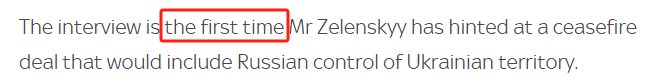 當(dāng)?shù)貢r間11月29日,澤連斯基在接受英國天空新聞臺采訪時表示,基輔控制的烏克蘭領(lǐng)土被“置于北約的保護(hù)傘下”,那么就可以達(dá)成停火協(xié)議,“其他的領(lǐng)土”可在晚些時候通過外交途徑尋求收回。