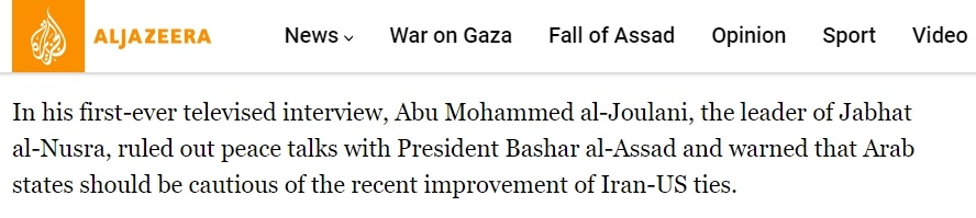 ▲2013年,朱拉尼在接受半島電視臺稱不會與阿薩德政府進行和談