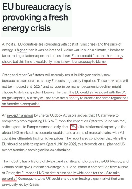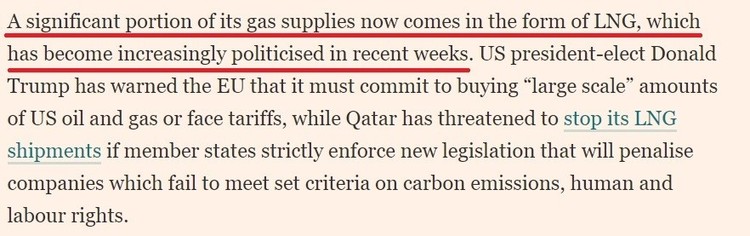 這立即引發(fā)歐盟液化天然氣(LNG)主要供應(yīng)國之一卡塔爾的不滿。該國已表示,如果其能源公司因違反歐盟新規(guī)被罰,卡方將停止向歐盟供應(yīng)LNG。