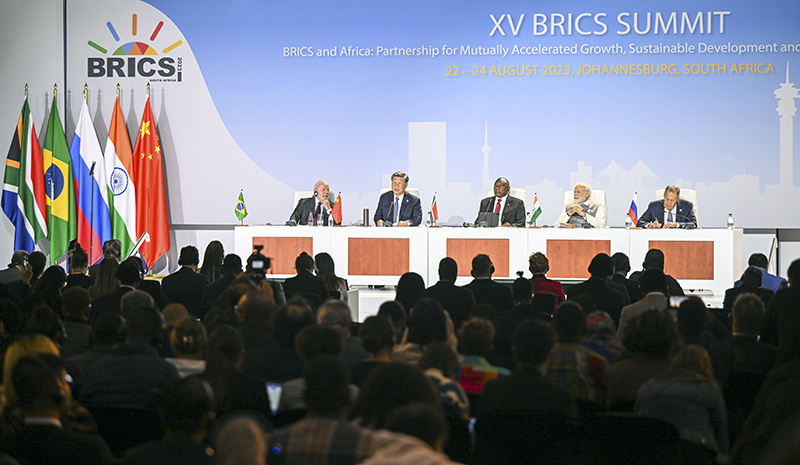 當?shù)貢r間8月24日上午,在金磚國家同非洲國家及其他新興市場和發(fā)展中國家領(lǐng)導人對話會上,習近平主席發(fā)出倡議,“攜手構(gòu)建發(fā)展共同體,不讓任何一個國家在世界現(xiàn)代化進程中掉隊!”