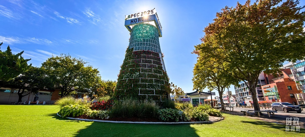 △慶州街頭APEC主題花壇。(總臺央視記者陳漢章拍攝)