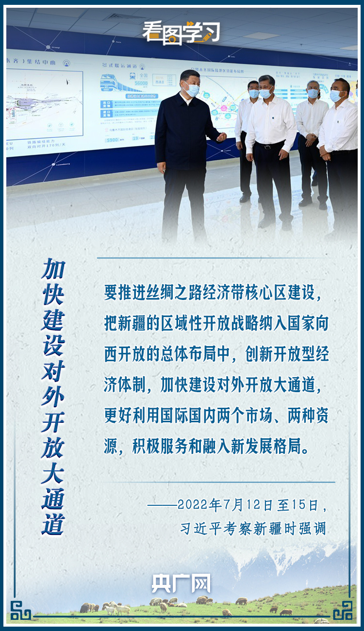 盛夏七月,習(xí)近平總書記赴新疆,開啟今年第7次國內(nèi)考察。 7月12日下午,習(xí)近平來到新疆大學(xué),參觀校史館和鑄牢中華民族共同體意識研究基地,強調(diào)育人的根本在于立德。在烏魯木齊國際陸港區(qū),習(xí)近平通過實時畫面察看中歐班列(烏魯木齊)集結(jié)中心各功能區(qū)和阿拉山口口岸、霍爾果斯口...