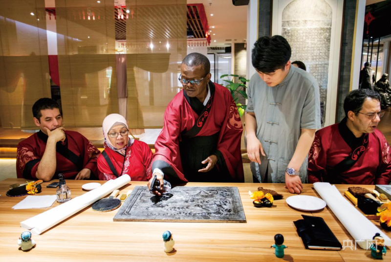 外國(guó)友人在孔子學(xué)院總部體驗(yàn)基地感受中國(guó)傳統(tǒng)文化(央廣網(wǎng)發(fā) 濟(jì)寧市網(wǎng)信辦供圖)