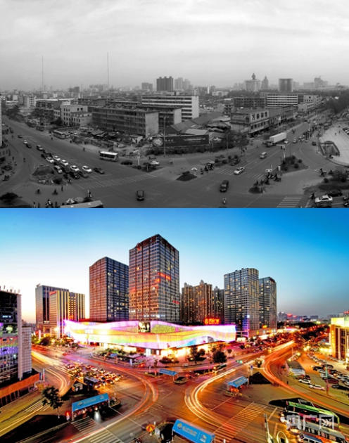 濟(jì)寧太白樓東路發(fā)展對(duì)比圖。上圖:2012年太白樓東路路口 下圖:2022年太白樓東路路口已成為商業(yè)中心(央廣網(wǎng)發(fā) 郭剛 攝)
