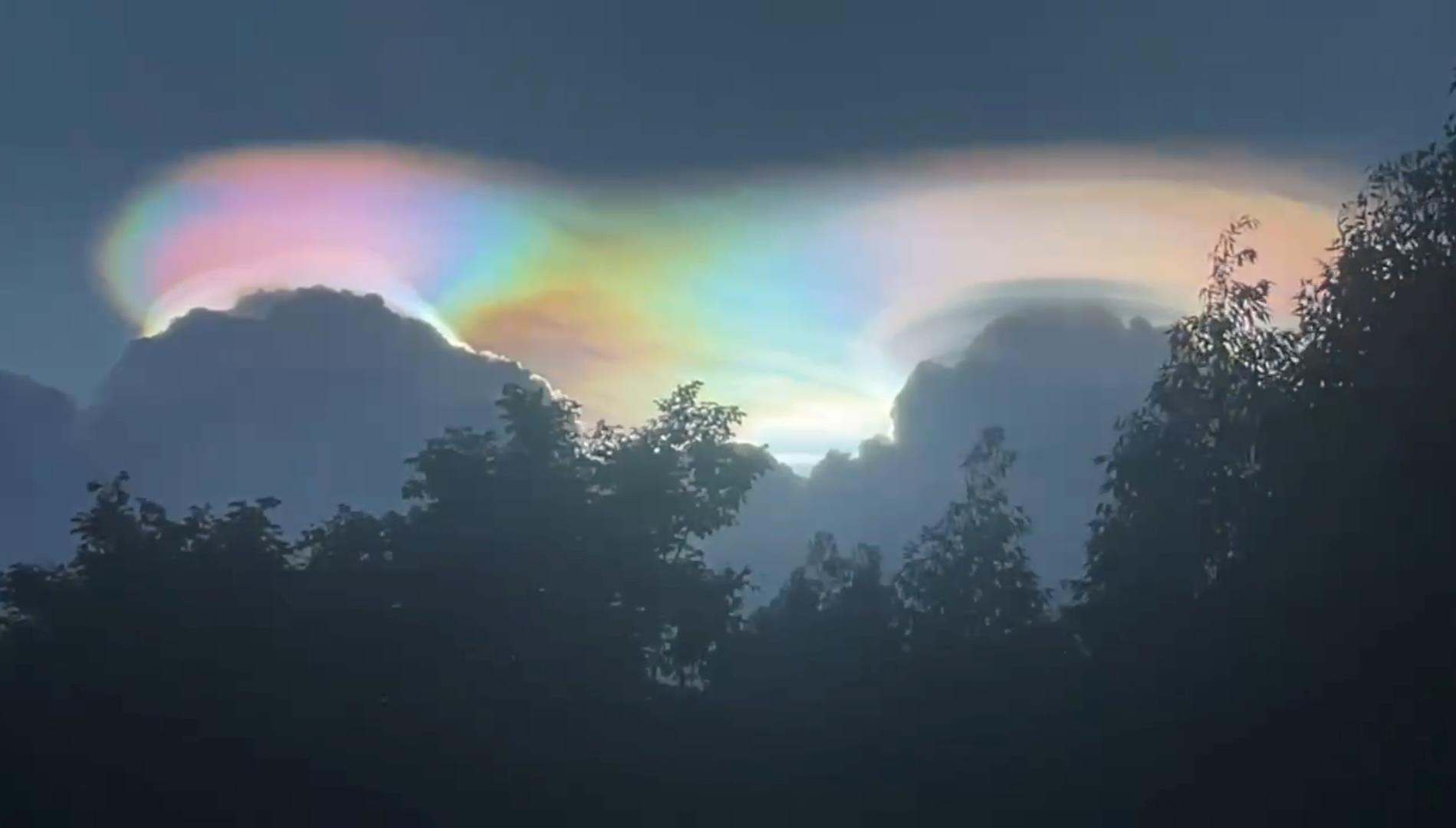 8月21日下午,海南海口、澄邁、臨高等地出現(xiàn)七彩云奇觀,所呈現(xiàn)出的光彩絢爛奪目,引得路人紛紛駐足拍攝并上傳網(wǎng)絡(luò)分享。據(jù)了解,“七彩云” ,學(xué)名“虹彩幞狀云”,常見于南方夏季。這種云頂?shù)?ldquo;圓帽子”類似于幞(“幞”是中國古代男子用的一種頭巾),故而像帽子一樣覆蓋著云頂,被形象地稱為幞狀云。當(dāng)陽光角度合適時(shí),光在云中液滴和冰晶之間衍射,形成絢麗的七彩之色。 (總臺記者 鐘華夏)
