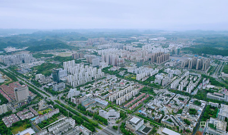 掩映在山林綠樹(shù)間的崇左市區(qū)(央廣網(wǎng)發(fā) 梁章暉 攝)