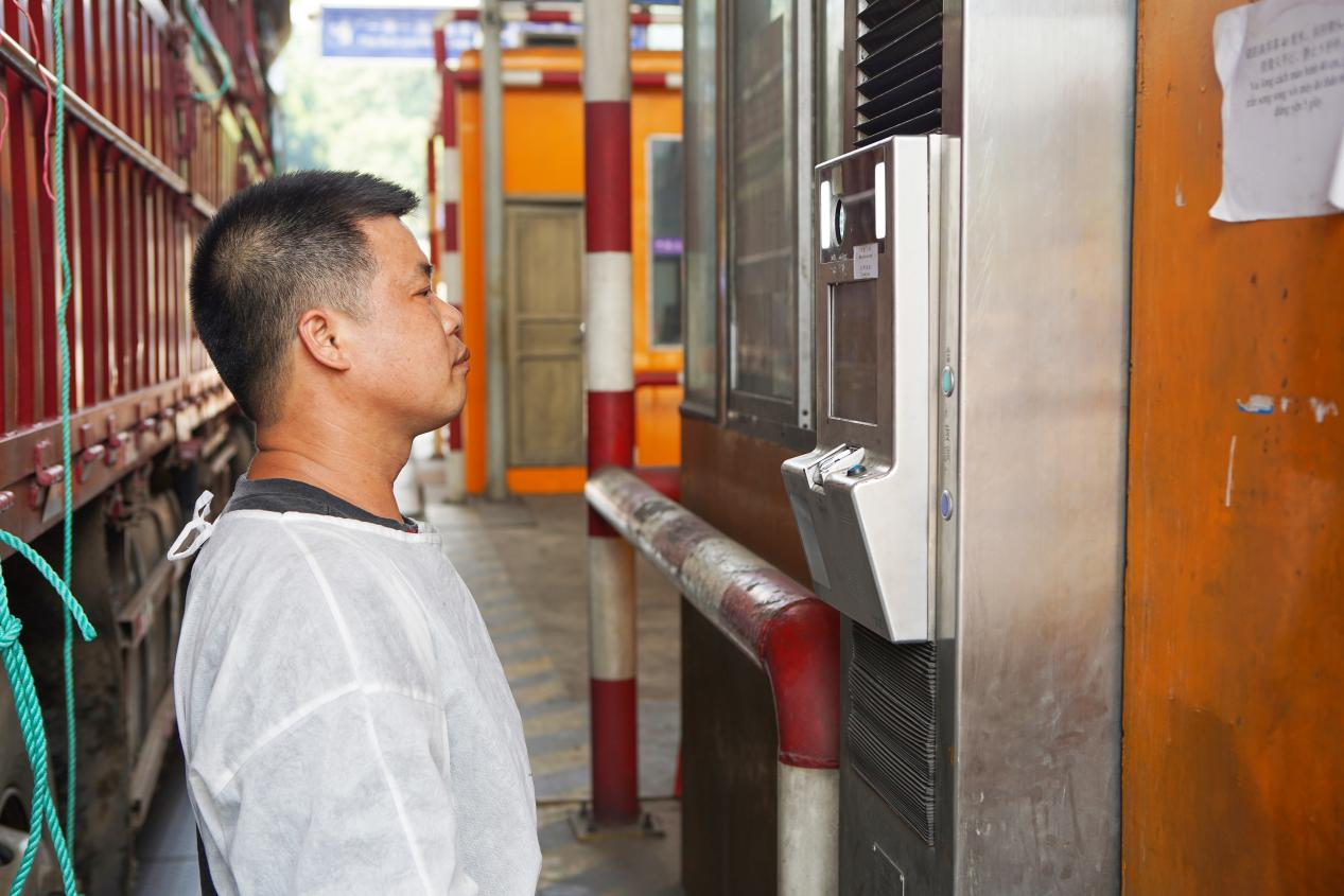 在友誼關(guān)口岸,準(zhǔn)備通關(guān)的貨車司機(jī)在進(jìn)行人臉識(shí)別(央廣網(wǎng)發(fā) 崇左片區(qū)管委會(huì)供圖)