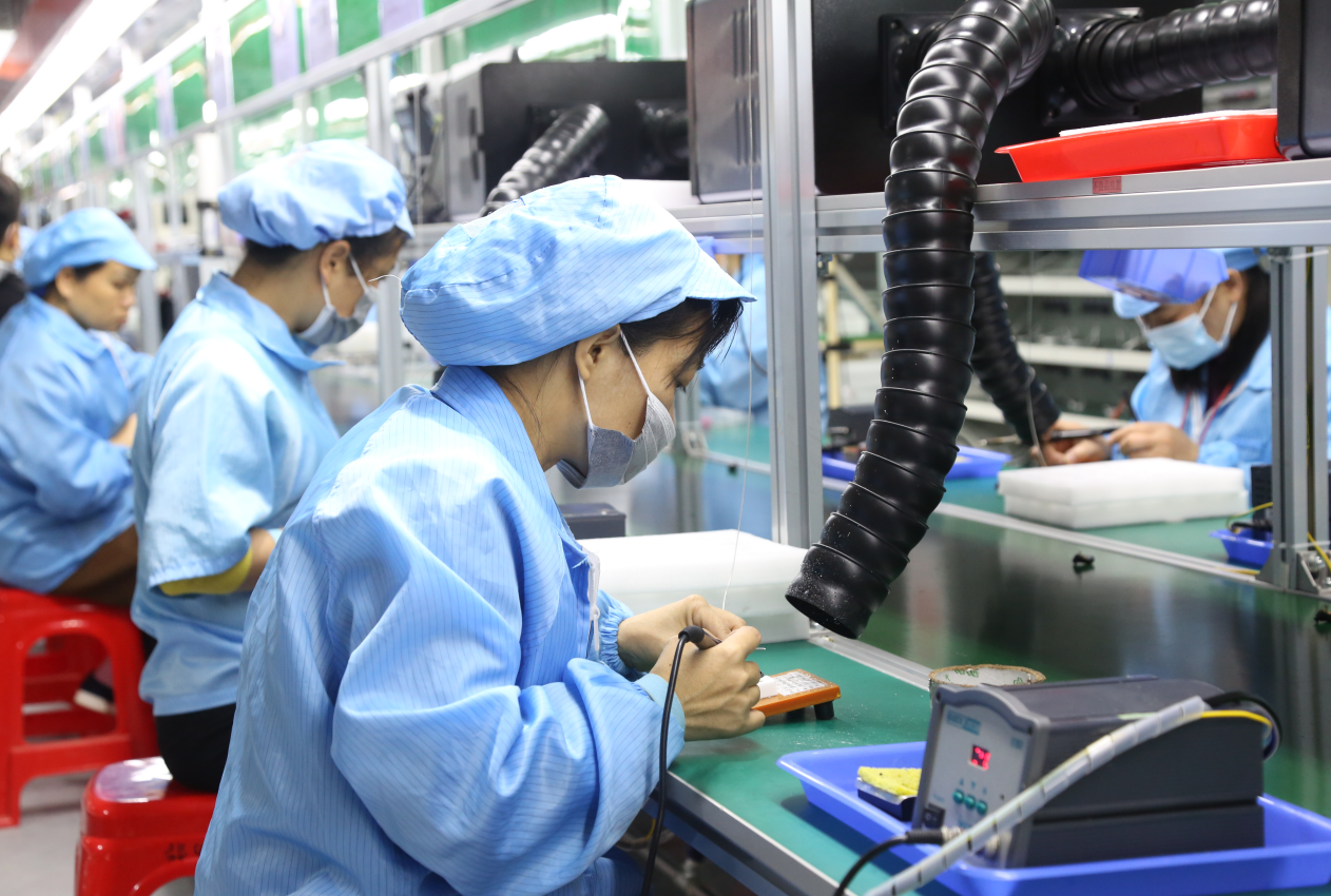邊民在憑祥三諾跨境電子產(chǎn)業(yè)示范園的生產(chǎn)車間工作(央廣網(wǎng)發(fā) 崇左片區(qū)管委會(huì)供圖)
