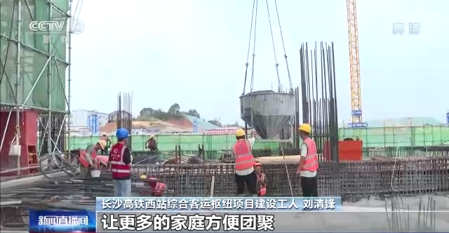 長(zhǎng)沙高鐵西站綜合客運(yùn)樞紐項(xiàng)目建設(shè)工人 劉清鋒:雖然我們和自己的小家不能團(tuán)圓,但是為了建設(shè)長(zhǎng)沙西站,能夠早一天完工,讓更多的家庭方便團(tuán)聚,所以我也覺得很自豪。