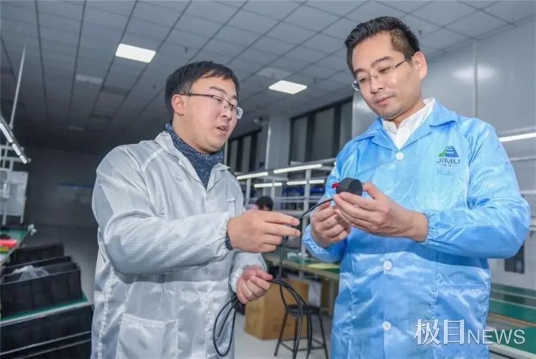 △韓道(右一)與孵化企業(yè)工程師交流產(chǎn)品研發(fā)進(jìn)展(圖片來源:極目新聞)