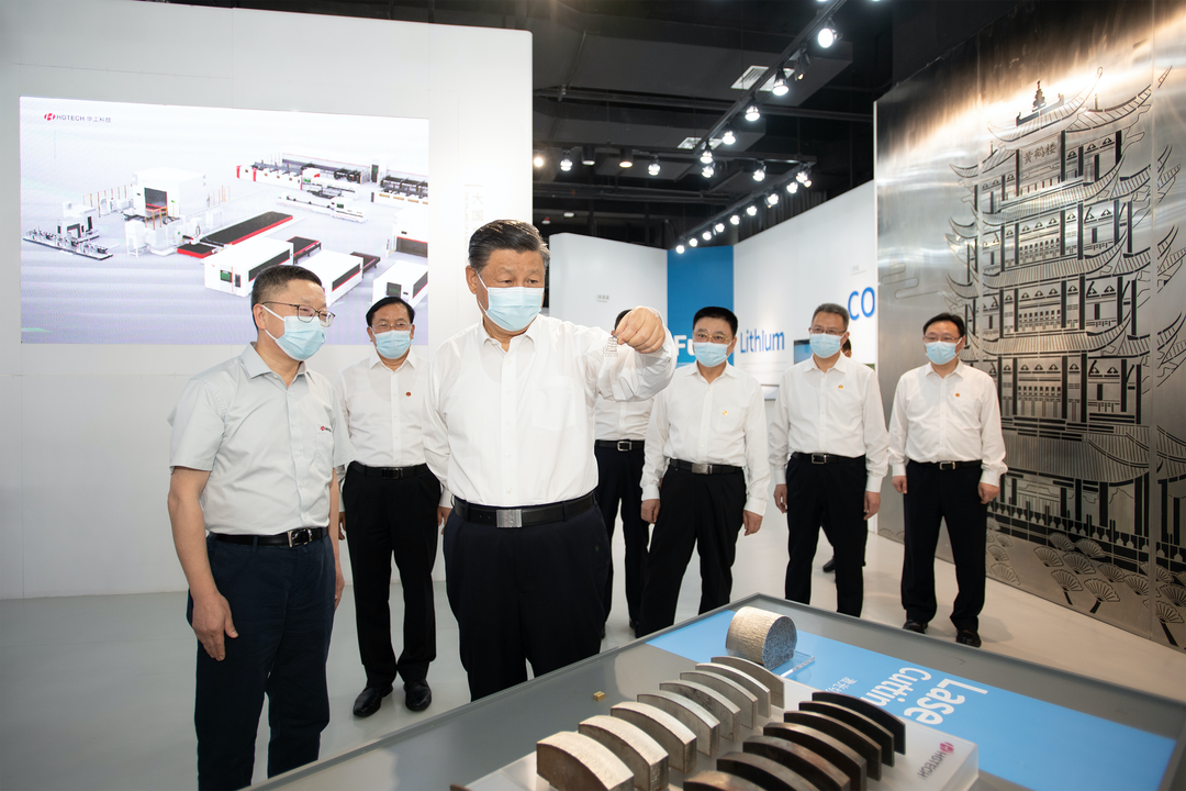 △2022年6月,在華工科技激光科技館,習(xí)近平總書記察看激光技術(shù)產(chǎn)業(yè)應(yīng)用展品