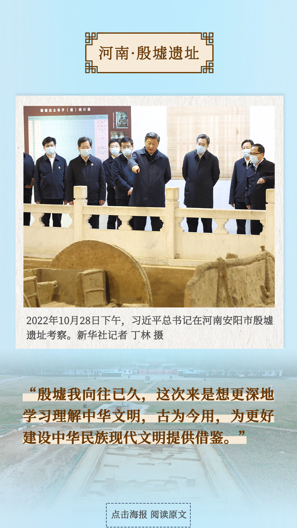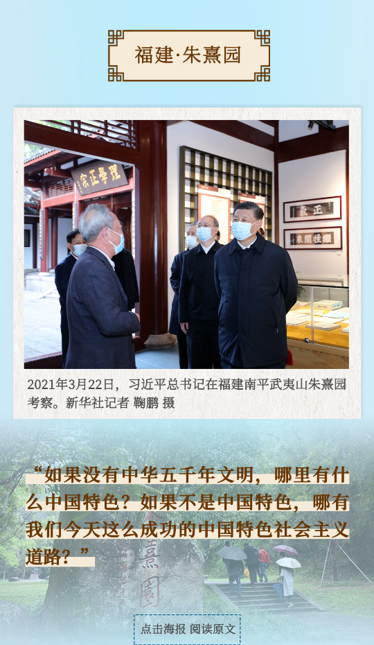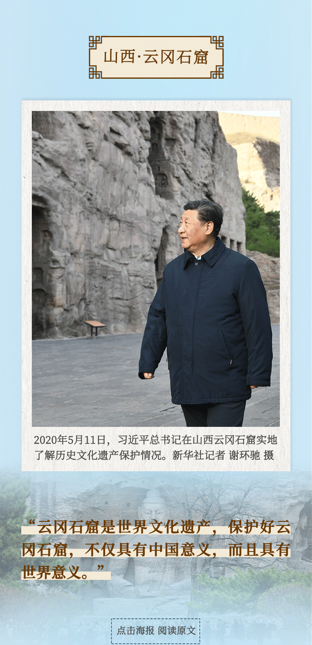 從四川三蘇祠到河南殷墟遺址,從山東孔府、孔子研究院到湖南大學(xué)岳麓書院,從甘肅嘉峪關(guān)關(guān)城到福建朱熹園,從山西云岡石窟到廣東潮州古城……考察文化遺產(chǎn)、探尋文明根脈,帶著深厚的歷史感,習(xí)近平總書記的“文化足跡”遍及全國。