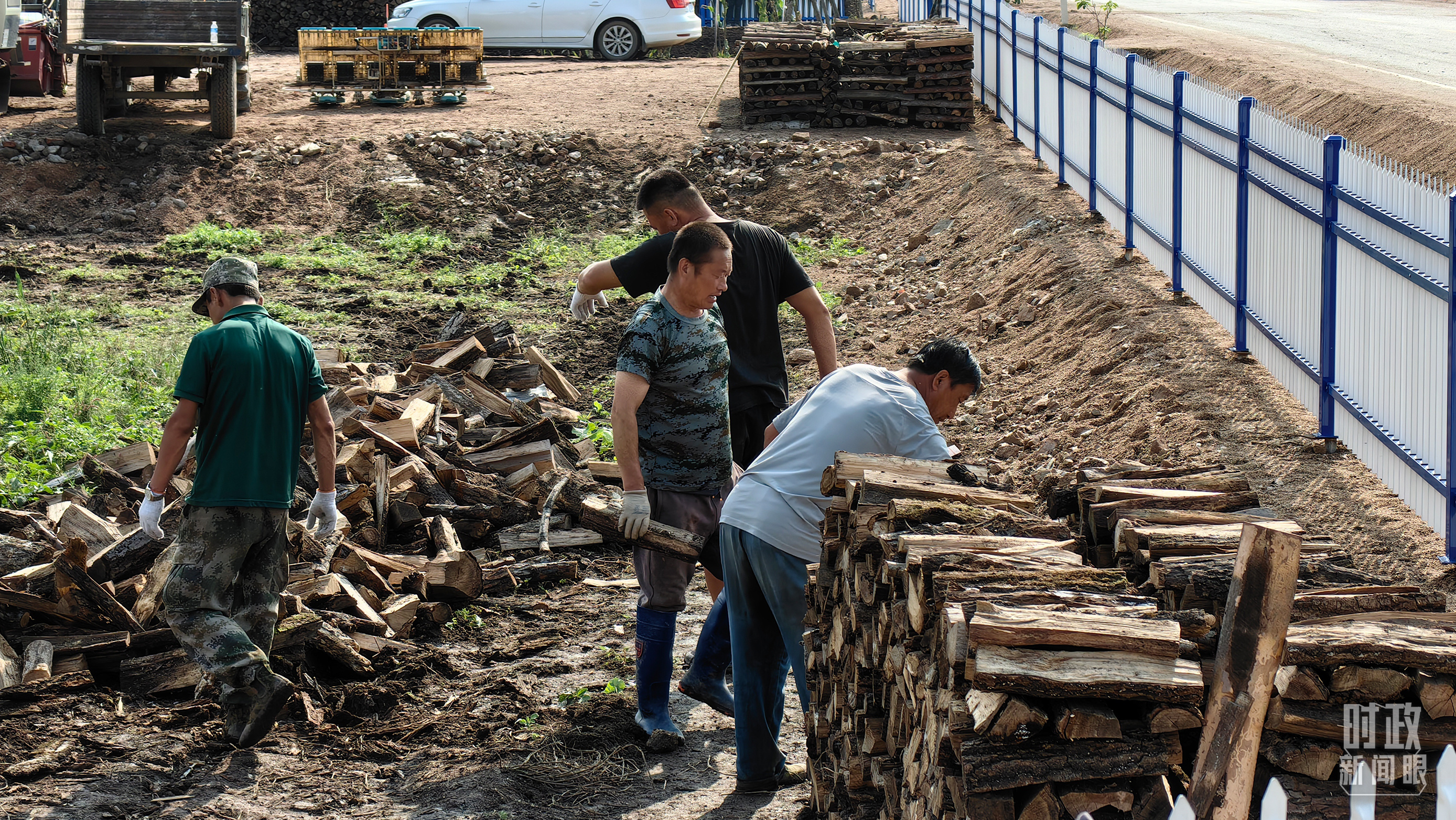 △村民正在整理家中被洪水沖垮的柴火垛。(總臺央廣記者潘毅拍攝)
