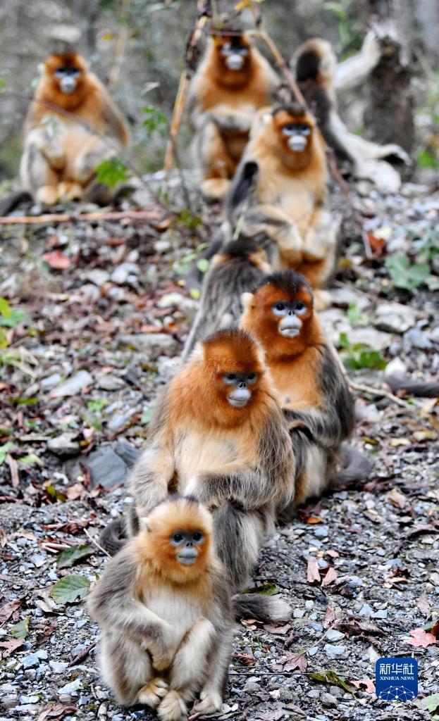 11月11日在四川白河國(guó)家級(jí)自然保護(hù)區(qū)拍攝的野生川金絲猴。