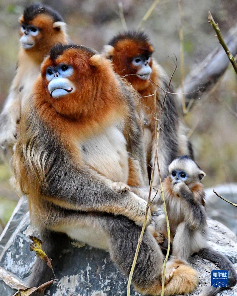 11月11日在四川白河國(guó)家級(jí)自然保護(hù)區(qū)拍攝的野生川金絲猴。