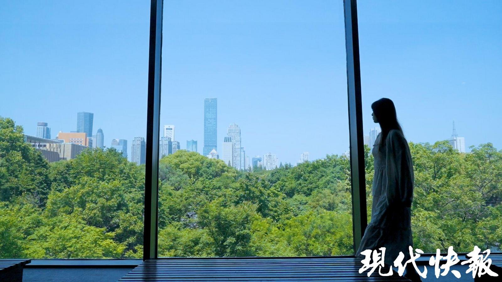 晨光彈指而過,窗外郁郁蔥蔥,遠處是新街口城市天際線,季節(jié)與歷史交疊同框。