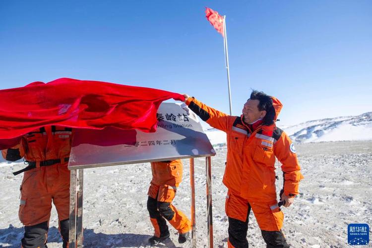 2024年2月7日在中國(guó)南極秦嶺站拍攝的揭牌儀式。新華社記者 周圓 攝