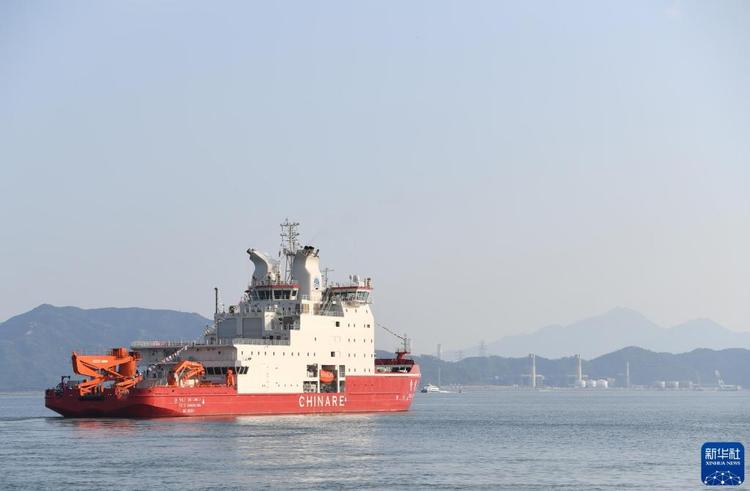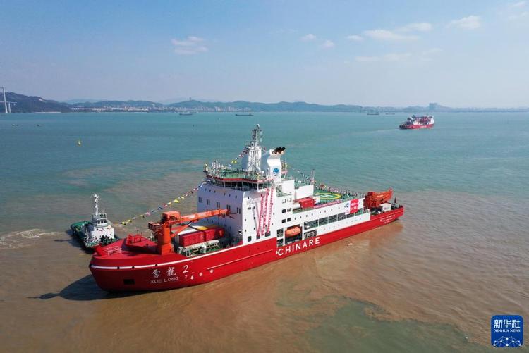 2024年11月1日,執(zhí)行中國(guó)第41次南極考察任務(wù)的“雪龍”號(hào)和“雪龍2”號(hào)船從廣州南沙國(guó)際郵輪母港碼頭出發(fā)。新華社記者 黃國(guó)保 攝