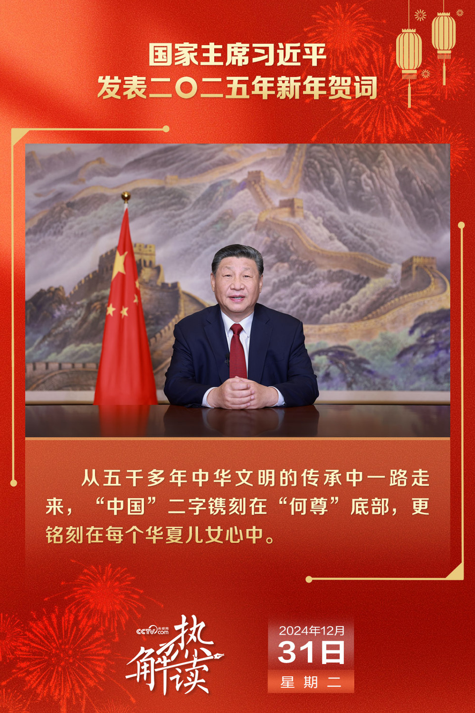 新年寄語(yǔ),國(guó)之回望,鐫刻民族發(fā)展的軌跡、描繪強(qiáng)國(guó)追夢(mèng)的畫卷,亦心系百姓美好的福祉、情牽你我奮進(jìn)的夢(mèng)想。 2024年12月31日晚,國(guó)家主席習(xí)近平通過中央廣播電視總臺(tái)和互聯(lián)網(wǎng),發(fā)表二〇二五年新年賀詞。 辭舊迎新之際,回望“我們一起走過春夏秋冬,一道經(jīng)歷風(fēng)雨彩虹”,...