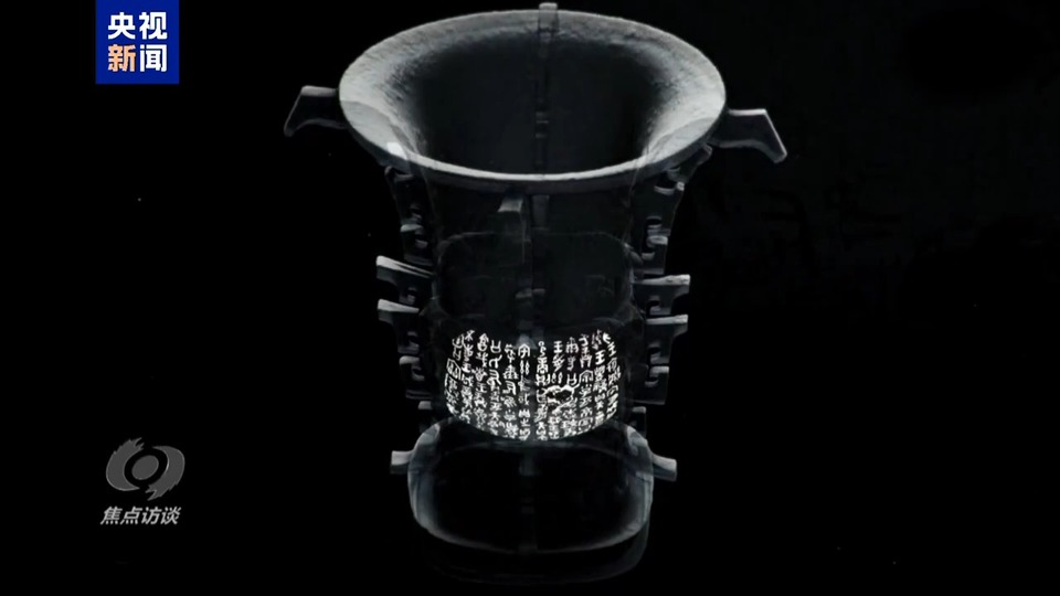 寶雞青銅器博物院院長 寧亞瑩:我非常喜歡站在這個地方看何尊,通過反射可以看到何尊底部的銘文。觀眾有這個要求,就想一睹真跡,我們就得把這個竭力呈現(xiàn)出來。