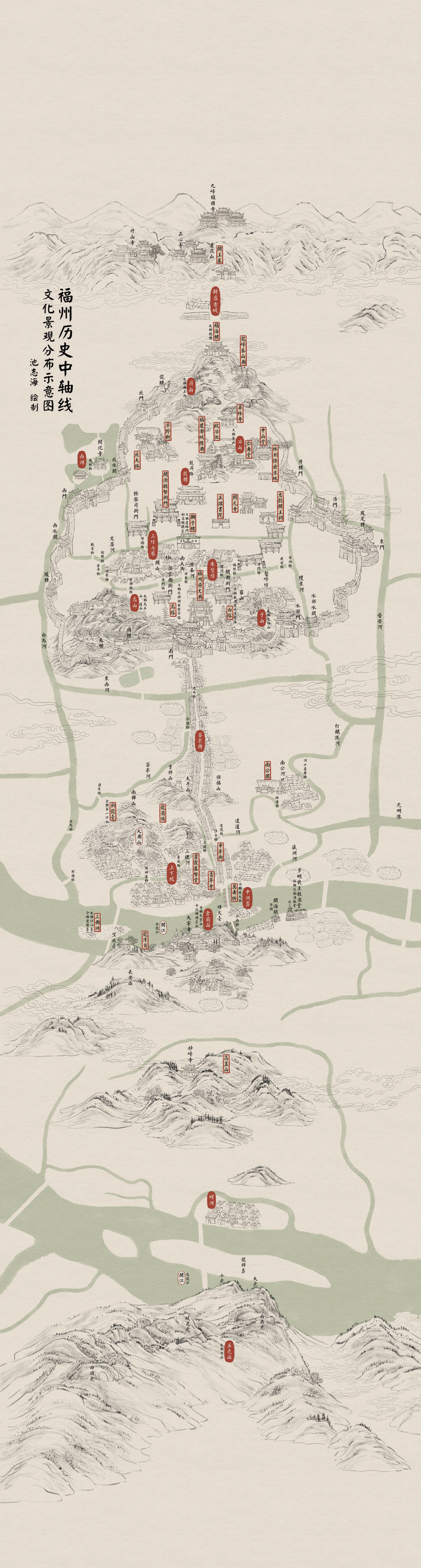 歷經(jīng)風(fēng)雨滄桑,這條全長約6.5公里的中軸線從不曾移位,已是福州文脈的象征。鎮(zhèn)海樓、冶山春秋園、三坊七巷歷史文化街區(qū)、上下杭商貿(mào)文化街區(qū)、煙臺山歷史風(fēng)貌區(qū)自北向南“珠落玉盤”,成為閩都文化的重要薈萃地、展示地。