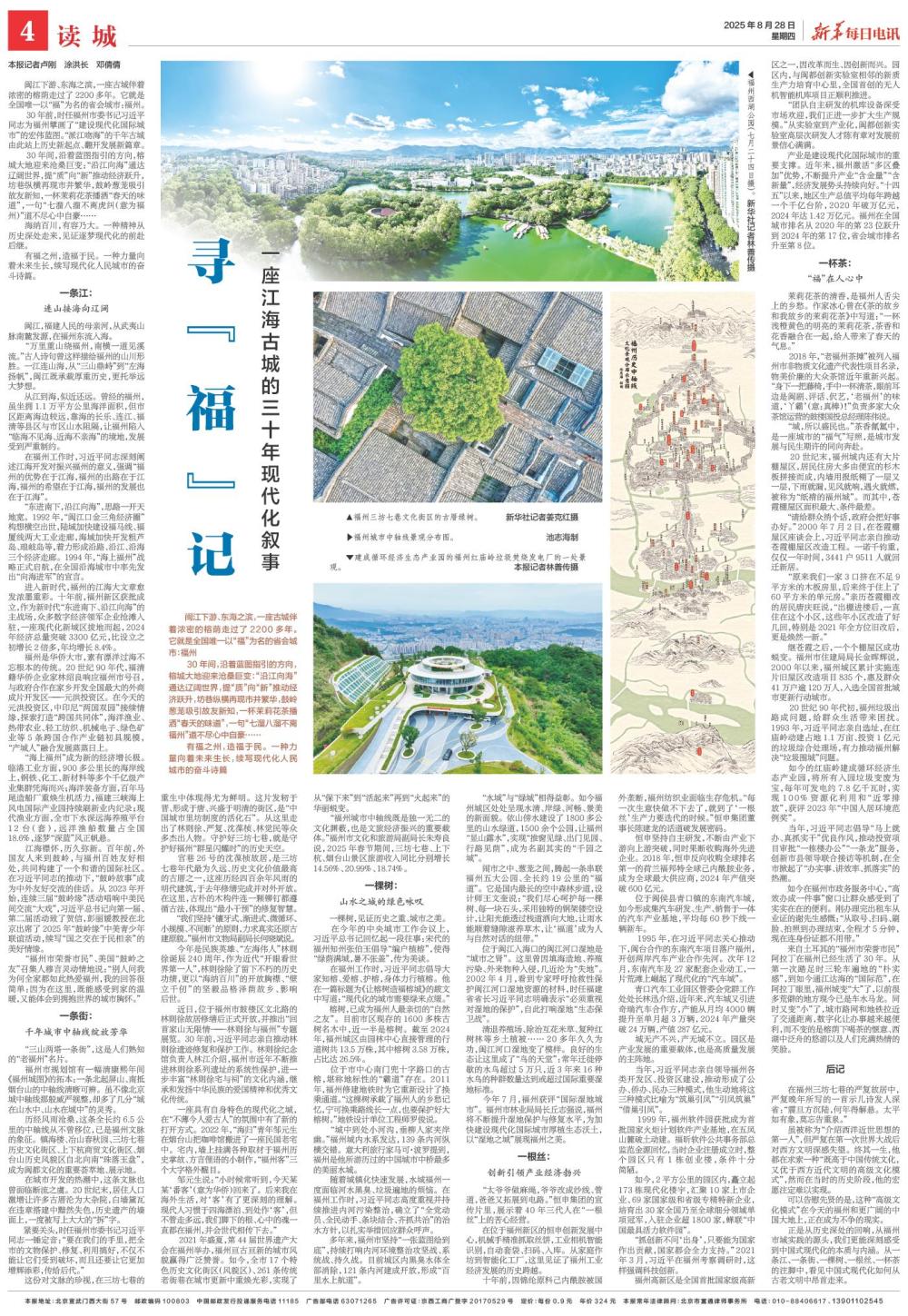 8月28日,《新華每日電訊》整版關(guān)注福建,刊登文章《尋“福”記——一座江海古城的三十年現(xiàn)代化敘事》。一起來看——