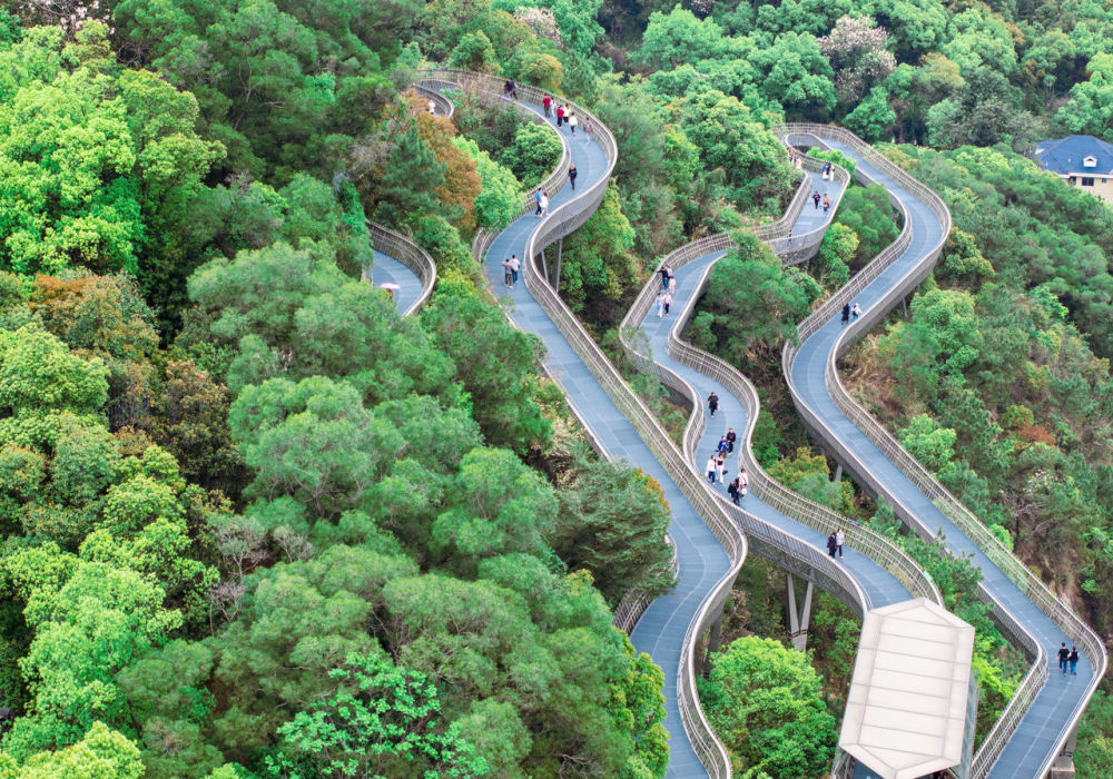 鬧市之中、蔥蘢之間,騰起一條串聯(lián)福州五大公園、全長約19公里的“福道”。它是國內(nèi)最長的空中森林步道,設(shè)計師王文奎說:“我們盡心呵護每一棵樹、每一塊石頭,采用獨特的鋼架鏤空設(shè)計,讓陽光能透過棧道灑向大地,讓雨水能順著縫隙滋養(yǎng)草木,讓‘福道’成為人與自然對話的紐帶。”