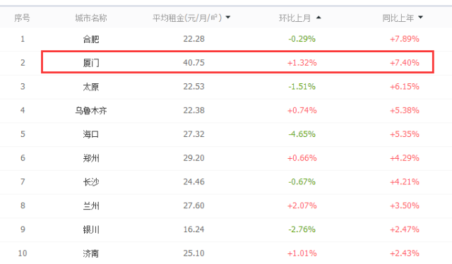 廈門房租漲幅