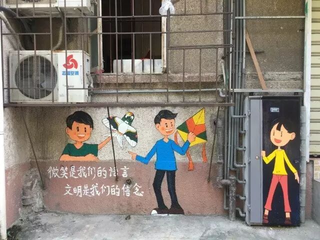 街巷墻面、花壇、水箱、配電箱和電線(xiàn)桿