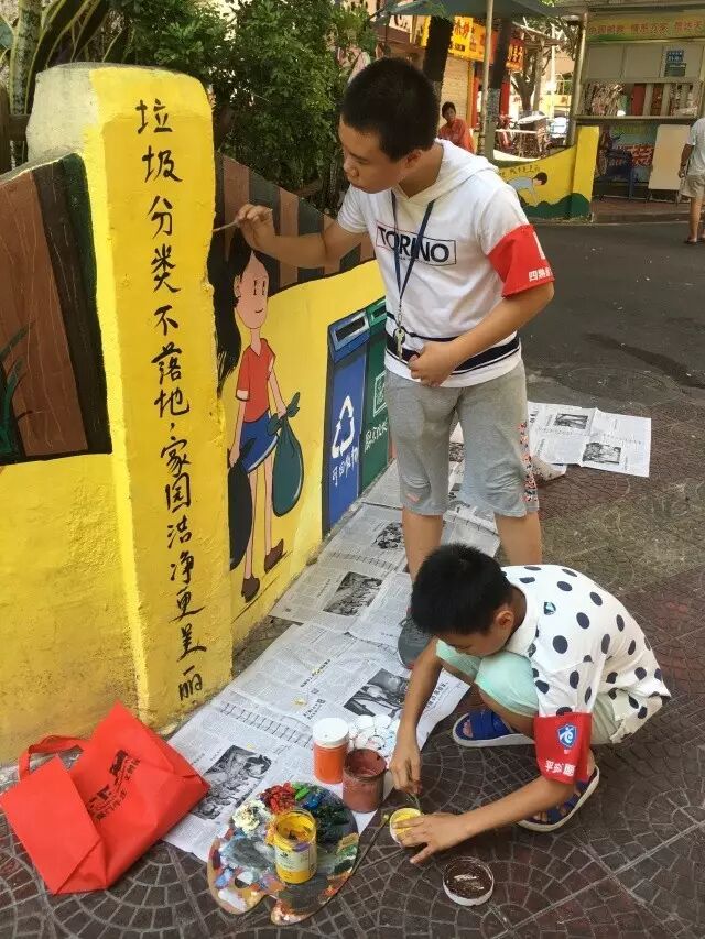 暑假后我就要上初中了,能來(lái)參與扮靚家園,挺開(kāi)心的。雖然我平時(shí)不太會(huì)畫(huà)畫(huà),但給墻面補(bǔ)點(diǎn)顏色還是可以的。就是顏料不太好調(diào),需要慢慢上色。