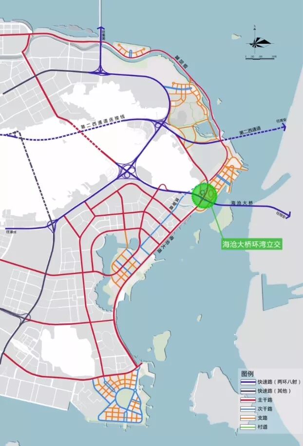 ④道路交通:增加鰲冠路、濱湖路等環(huán)灣路由,疏解濱海大道、馬青路交通壓力,增設(shè)海滄大橋環(huán)灣立交,提升灣區(qū)的可達(dá)性。