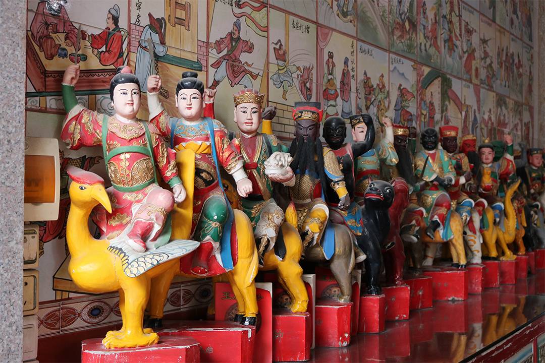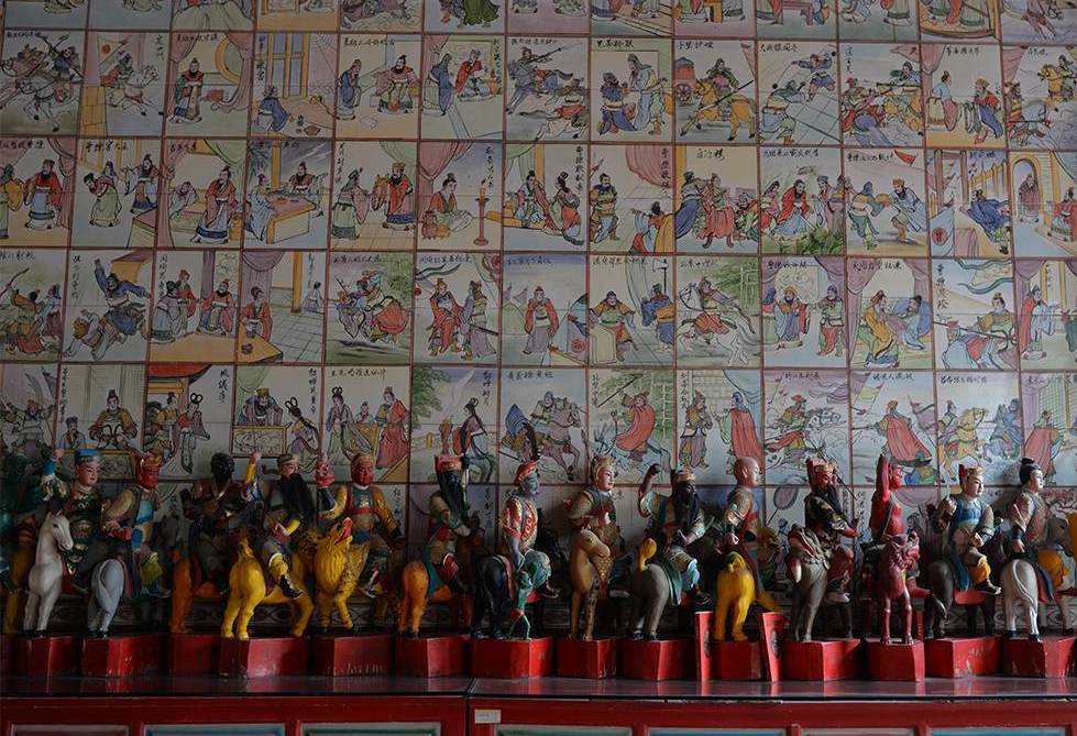 走進(jìn)茂林庵,最博人眼球的是壁畫和下方的雕像,精致細(xì)膩,畫上畫的是三國(guó)演義中的典故。