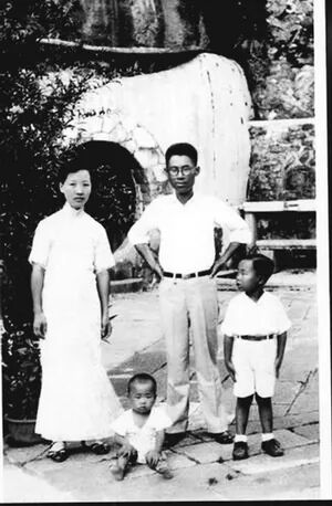當(dāng)年,洋裝在身的郭景儀與妻兒們合影