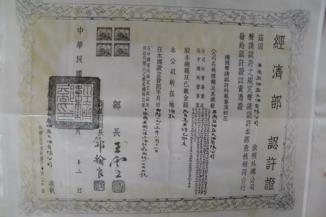 這是當(dāng)年,亞細(xì)亞火油公司的營(yíng)業(yè)執(zhí)照
