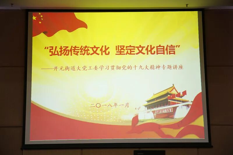 在新的一年里,為了在全街道營造一個良好的開端和更加濃厚的學(xué)習(xí)氛圍,持續(xù)深入學(xué)習(xí)宣傳貫徹黨的十九大精神,用十九大精神武裝頭腦、引領(lǐng)行動,2018年1月4日下午,開元街道黨工委攜手大黨工委成員單位(廈門市委統(tǒng)戰(zhàn)部、市委老干部局),以一場別開生面的宣講報告會開啟了開元街道大黨工委學(xué)習(xí)宣傳貫徹十九大精神的“新年第一課”。