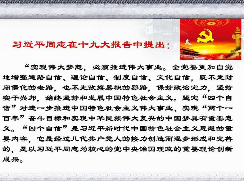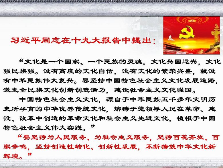 弘揚傳統(tǒng)文化,堅定文化自信,是學(xué)習(xí)宣傳貫徹黨的十九大精神和習(xí)近平新時代中國特色社會主義思想的一個重要方面。