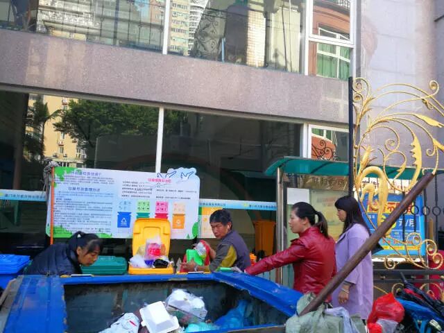 此時(shí),是上午8:10,在他們不遠(yuǎn)處,幾個(gè)垃圾桶旁,一個(gè)身材高挑的美女在與保潔員康梅來(lái)和垃圾轉(zhuǎn)運(yùn)工余紹貴正熱烈討論。廈禾社區(qū)聯(lián)邦廣場(chǎng)小區(qū)的這個(gè)垃圾分類點(diǎn),看起來(lái)已經(jīng)井然有序。“雖然成績(jī)都挺好的,但是我覺(jué)得還要能夠做得更好一些。”做了多年翻譯后,2011年開始在廈禾社區(qū)工作的高永仙說(shuō),“450多套住宅,168家商戶,這就是我作為社區(qū)網(wǎng)格員要每天必須面對(duì)的內(nèi)容。”她一邊翻看垃圾桶,一邊噼里啪啦說(shuō)個(gè)不停。