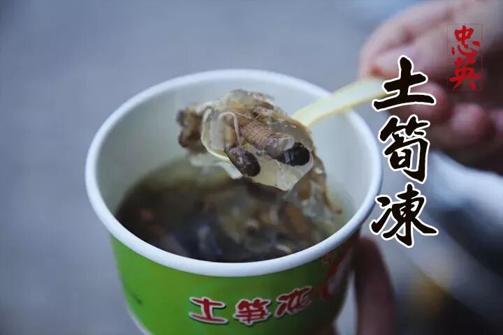 土筍凍傳說是鄭成功攻打臺灣時,常喝沙蟲湯,由于戰(zhàn)事緊急想起吃飯時,熱湯已變涼,沒想到?jīng)鐾傅纳诚x湯凝結(jié)成凍,味道極為鮮美,是為土筍凍的由來。